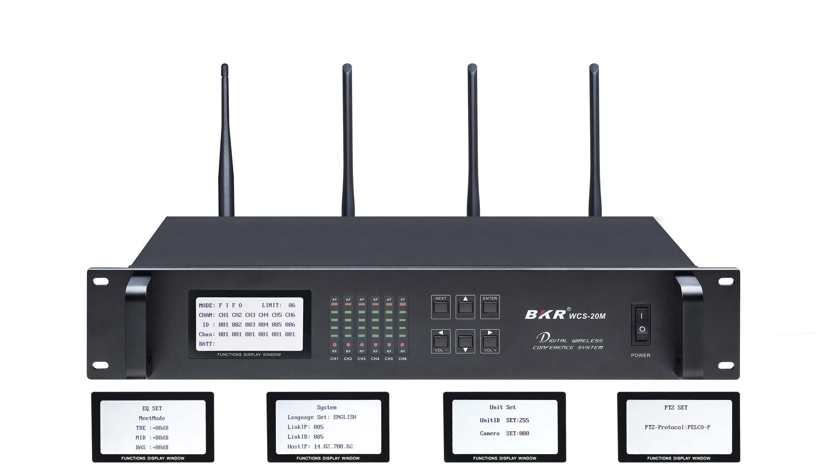 *Three speech mode:FIFO( first‐in first‐out),limited speech,chairman specially. 1‐6 speaking number can be chosen.