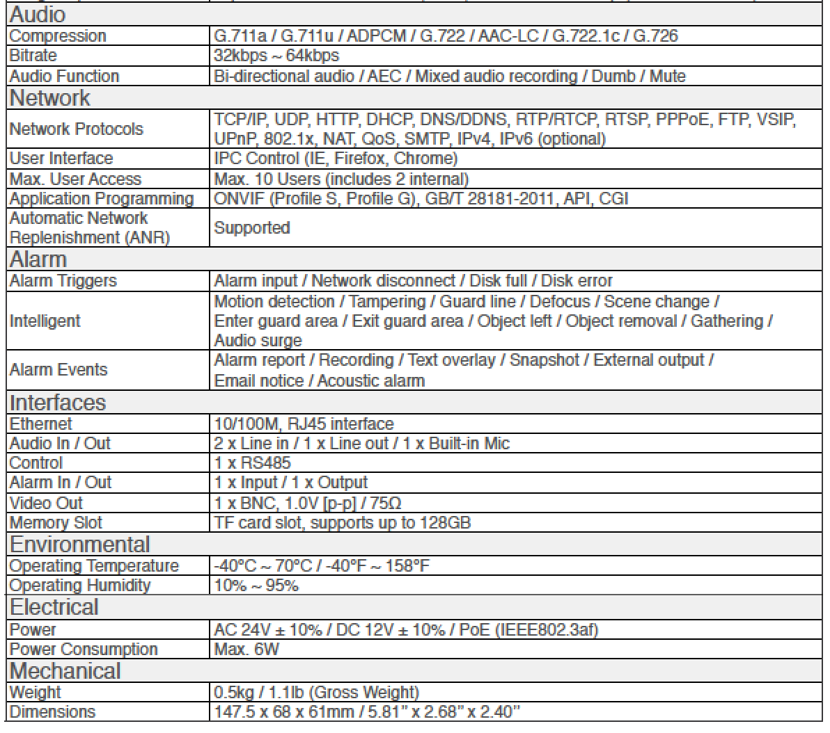 TF card slot, support Automatic Network Replenishment (ANR)