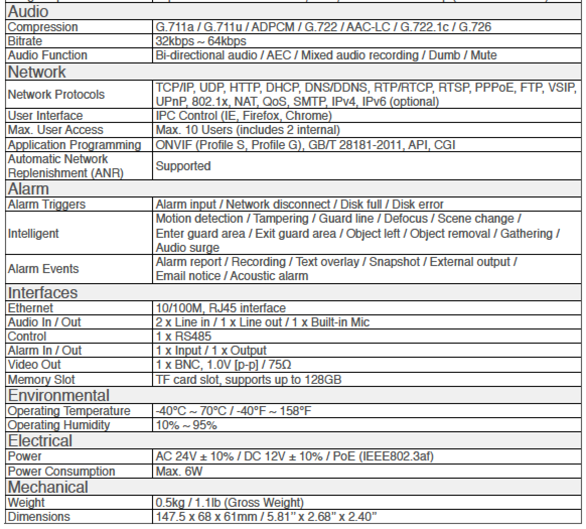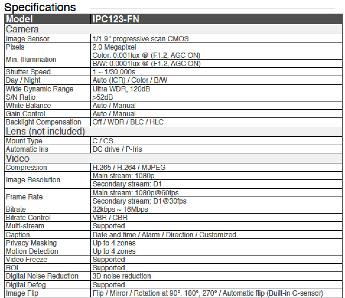 Network Box Camera 2.0M Ultra WDR Starlight, model: IPC123-FN