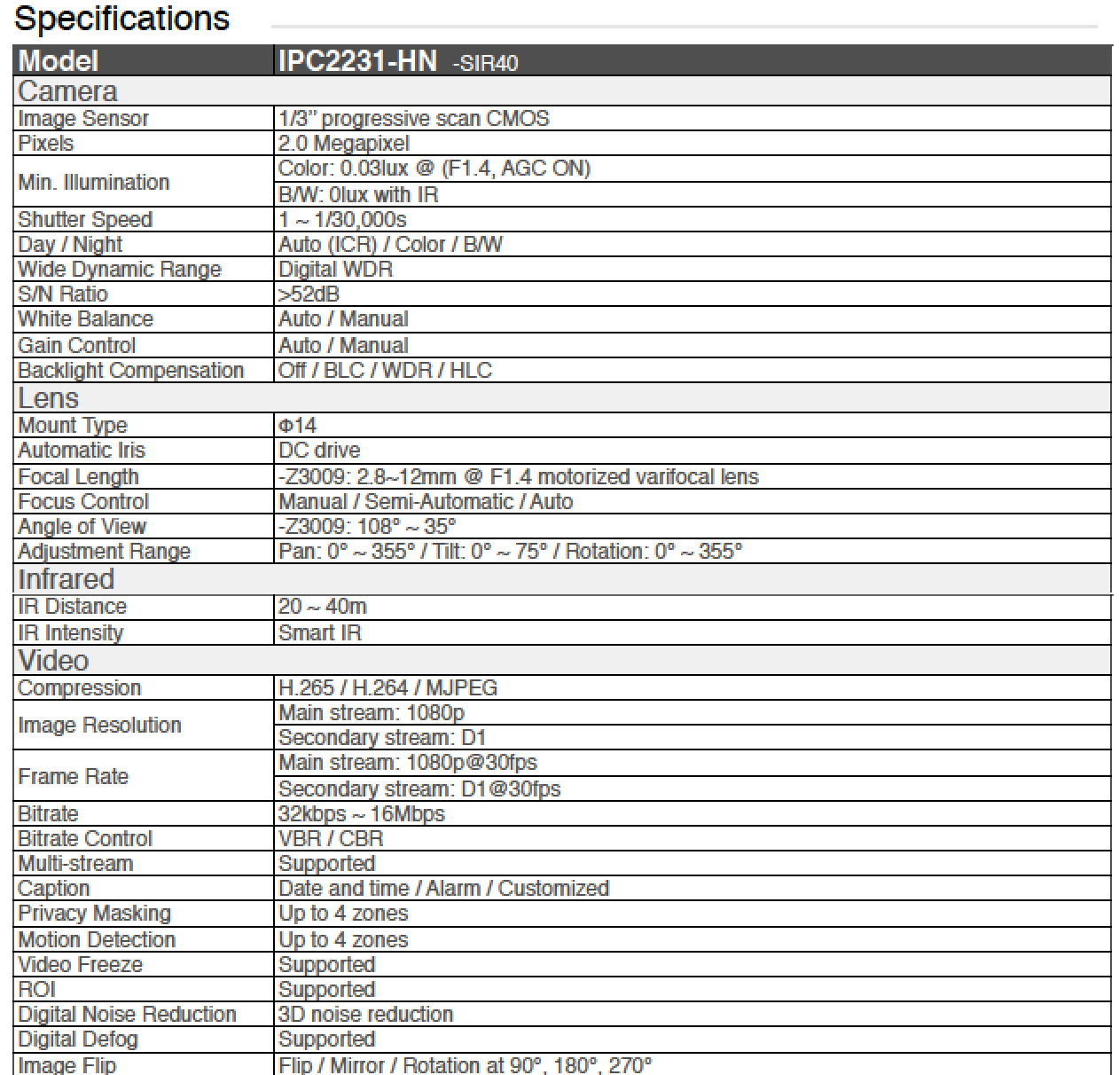 20 ~ 40m IR distance