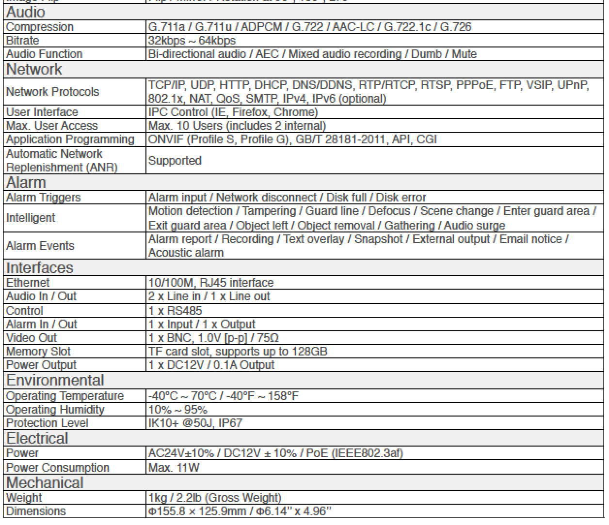 WDR support / 3D noise reduction / Auto Iris / HLC